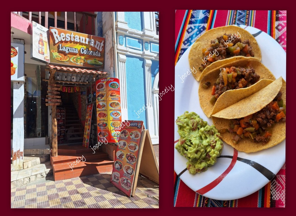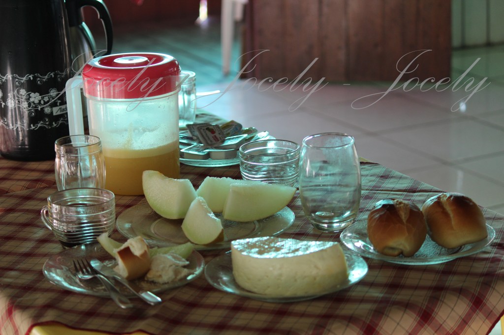 Lanche simples, preço justo e rápido. O preparo dos alimentos pode ser visualizado através do balcão da cozinha. Tomamos um lanche com pão torrado, margarina, geleia, ovos mexidos., 2 cafés e 1 suco. Para 3 pessoas: U$16 – S/57,50
