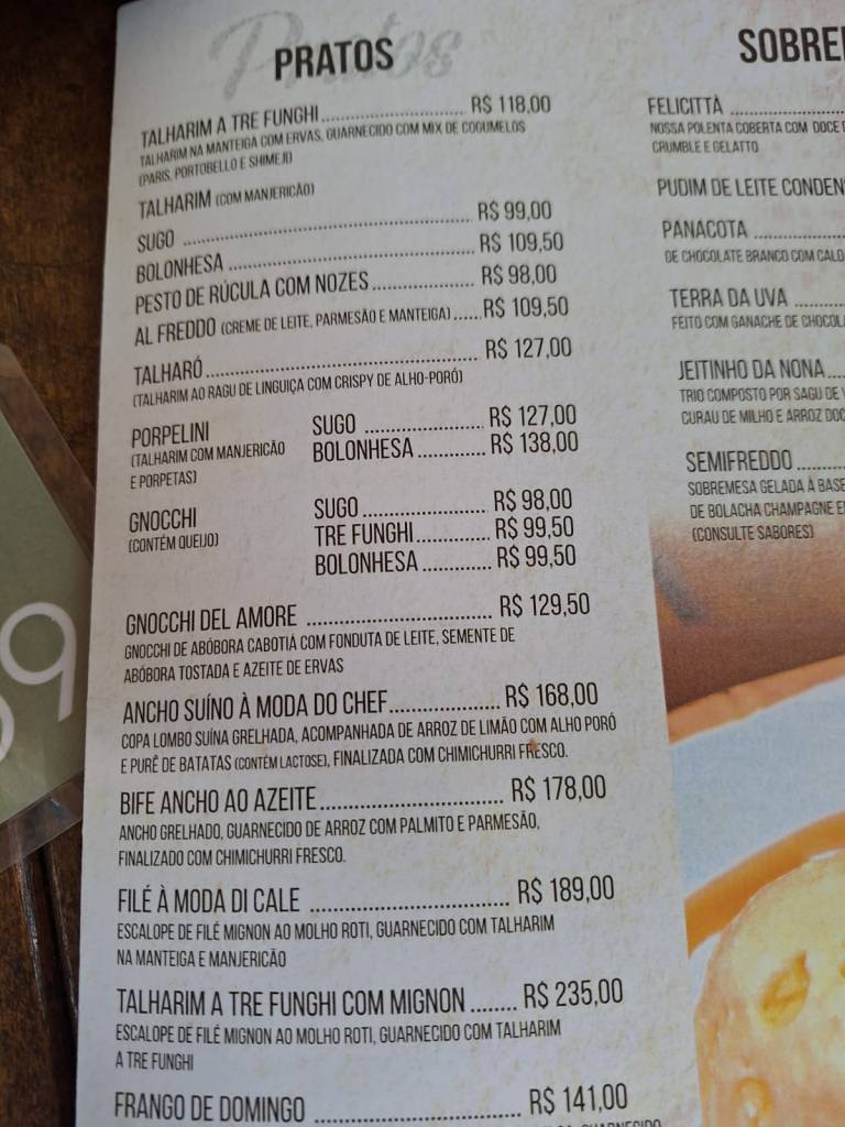 Gorjetas – em torno de 10% do total da conta, mas não é muito comum pagar.