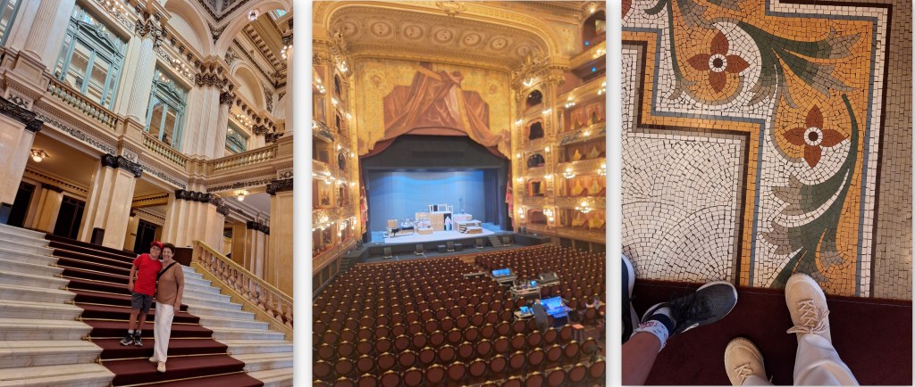 Visita obrigatória com guia do próprio teatro. Durante o percurso são vistos Foyer, Galeria Bust, Salão Dourado e Salão Principal, observe os vitrais e lustres do teto. O guia deve mostrar um local curioso, é um espaço que era reservado para as viúvas assistirem aos espetáculos.