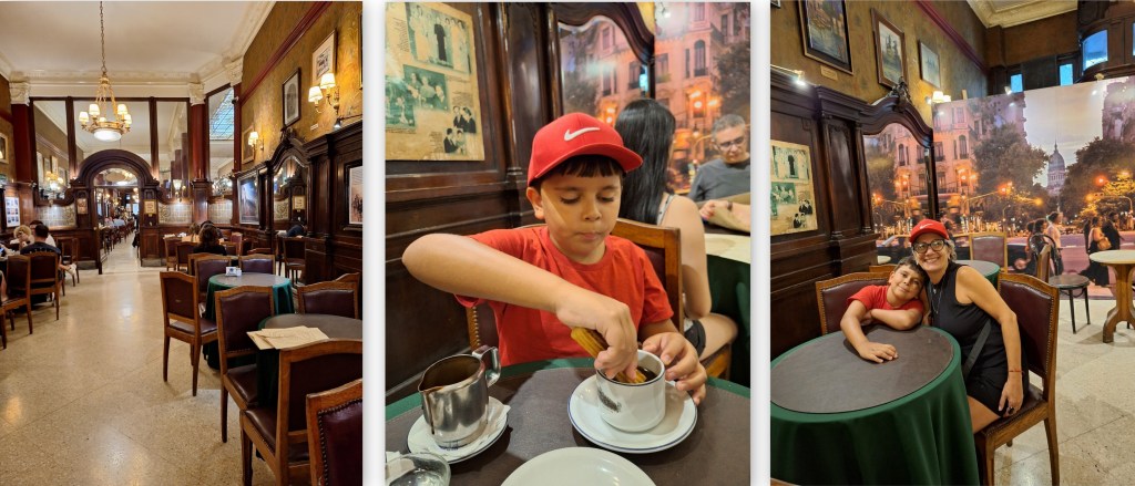 Visita para um lanche da tarde com “medias lunas”, churros, chocolate quente. Para o jantar geralmente tem fila. Recomendado: a tradicional “milanesa”, bife de chorizo, lomo gratinado. As apresentações de tango são no subsolo em um pequeno espaço e no salão principal