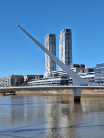 Ponte para pedestres sobre o Rio de la Plata, construção moderna que segundo os portenhos representa a imagem estilizada de uma mulher dançando tango. Tem um mecanismo de rotação central que permite que ela gire e fique aberta para a passagem de veleiros. Durante a noite recebe uma iluminação especial.