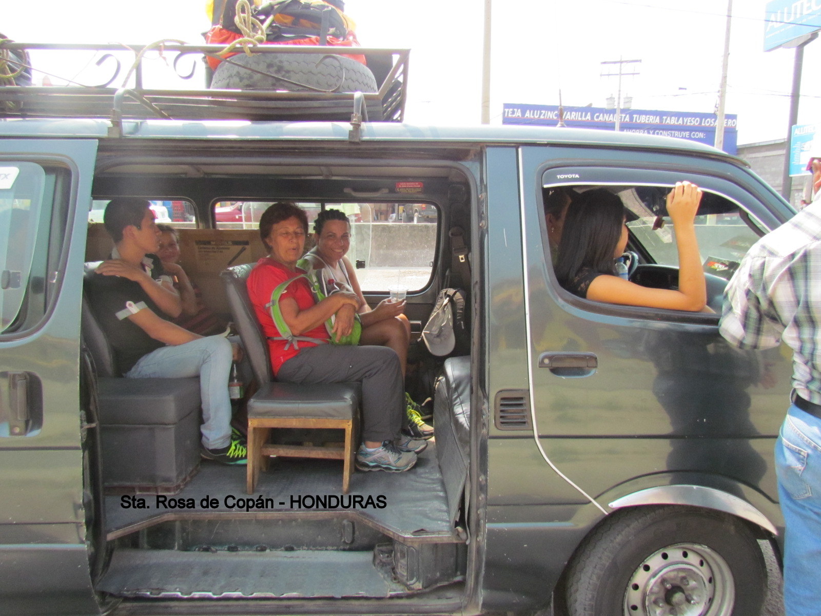 Voltamos para o estacionamento, nosso lugar estava reservado na van, sentamos e a partir daí começou a entrar muita, muita gente, quando a lotação estava mais do que completa, o motorista deu partida, fez o retorno no outro lado da rodovia e parou novamente para colocar mais passageiros, como se não bastasse aquela coisa surreal, no caminho foram colocando mais pessoas, algumas ficavam em pé entre os bancos e no final as pessoas que foram subindo iam dependuradas na porta, se não erramos na conta estavam ali 26 pessoas, foram 45km. em 2h.30, com o veículo se arrastando, não dava para mexer nem um músculo, tudo estava encaixado.